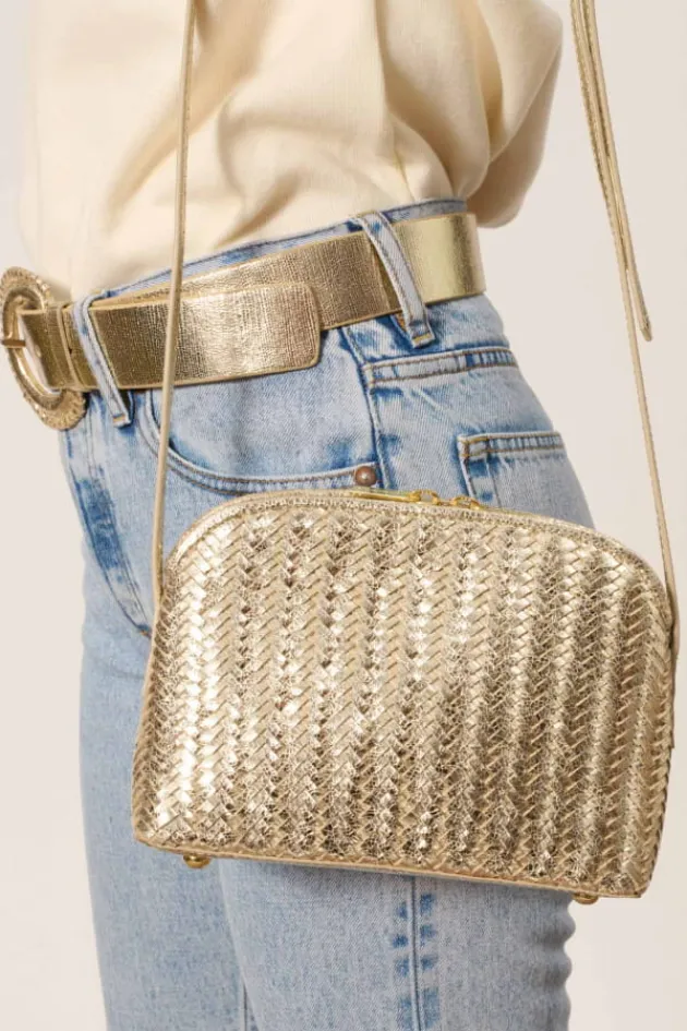 - Mini Sac En Cuir Chevre Metallique Tresse Dore