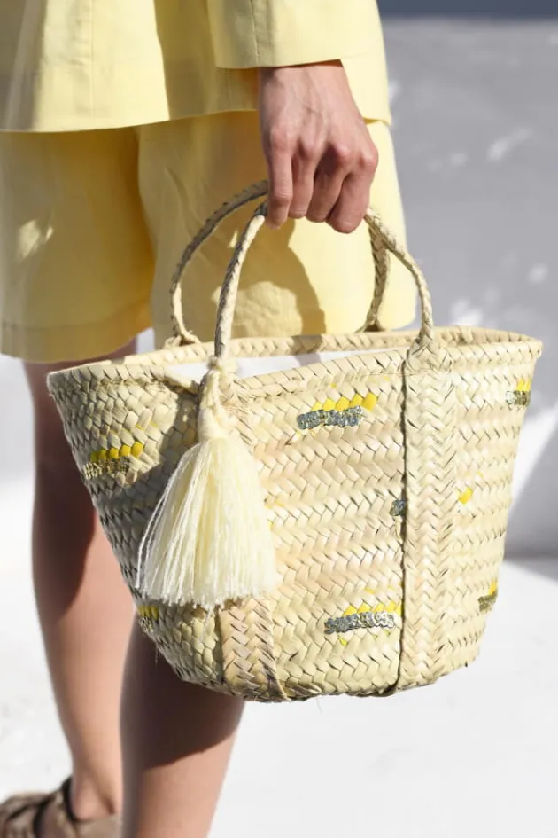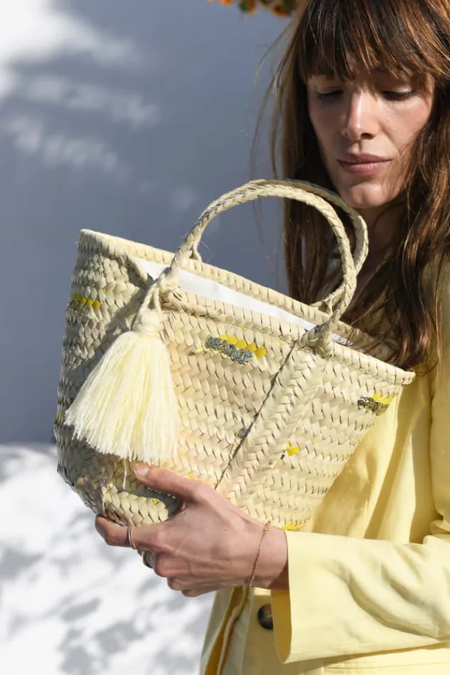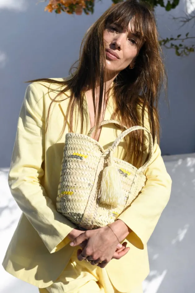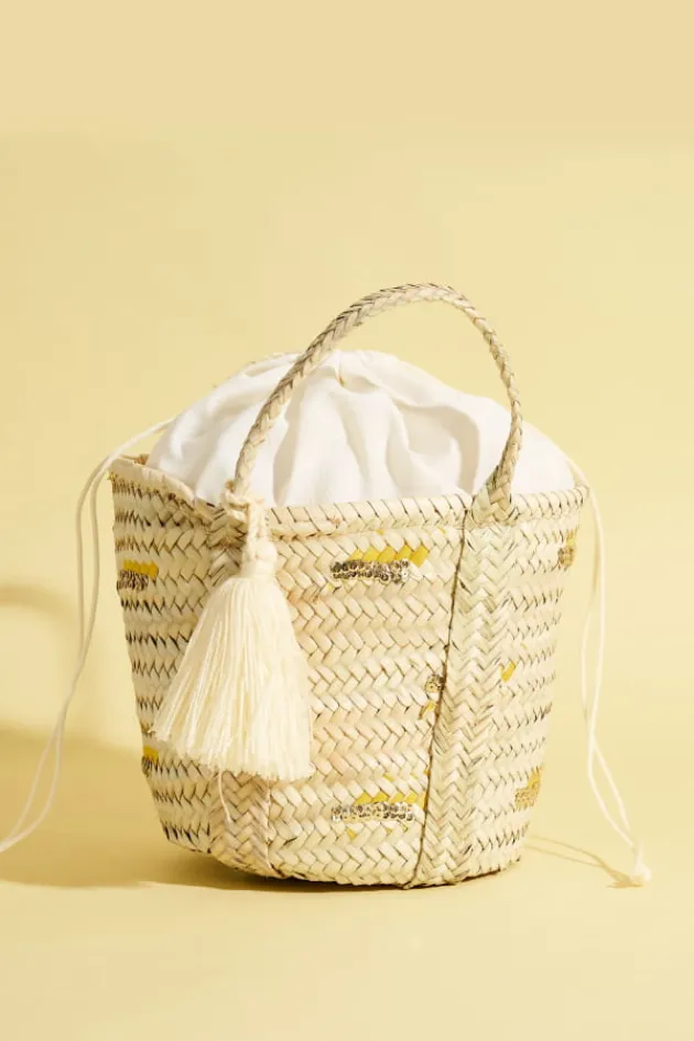 - Petit Panier Seau En Paille Colore Avec Anses Courtes