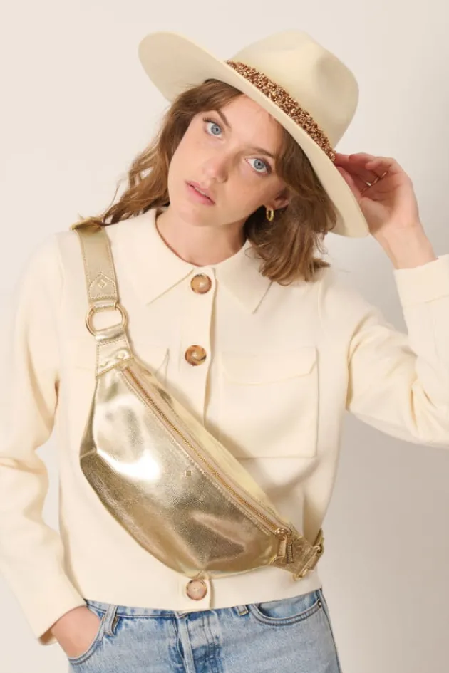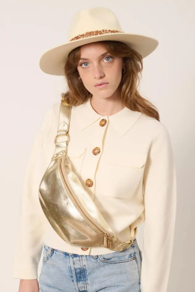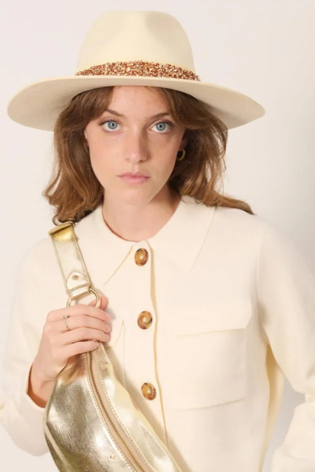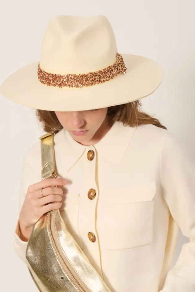 - Chapeau En Feutre Ecru A Bords Larges, Orne D’Un Galon Paillete.