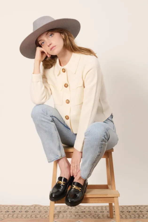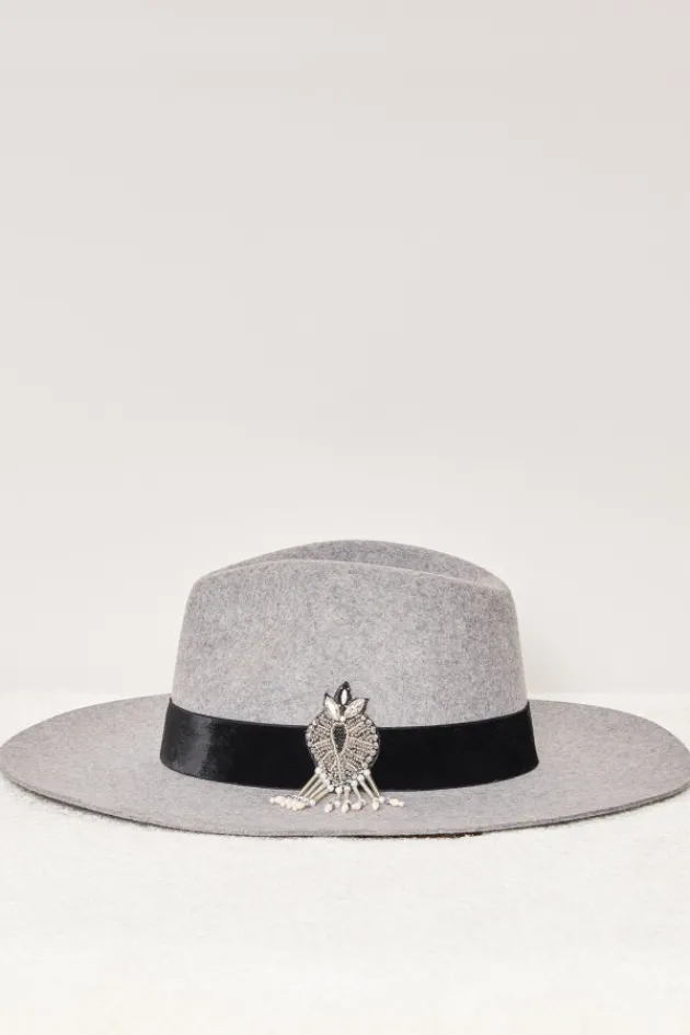 - Chapeau En Feutre A Bords Larges, Orne D’Un Galon Velours Noir Et D’Une Broderie En Patch.