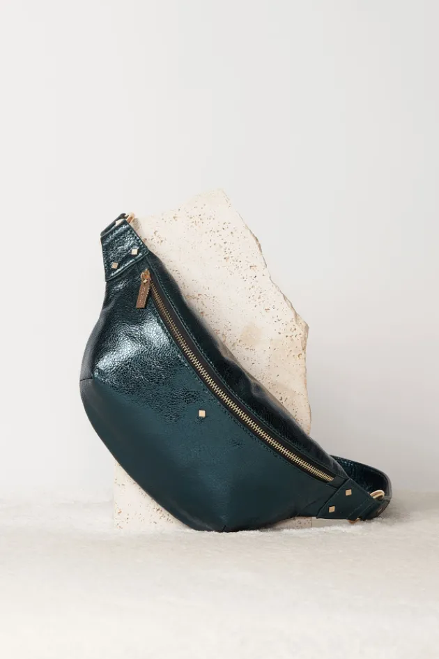 Sacoche Banane En Cuir CrackleFermeture Double Zip Et Rivets Dores.Laniere Amovible Et Boucle De Reglage Dore.Doublure C…