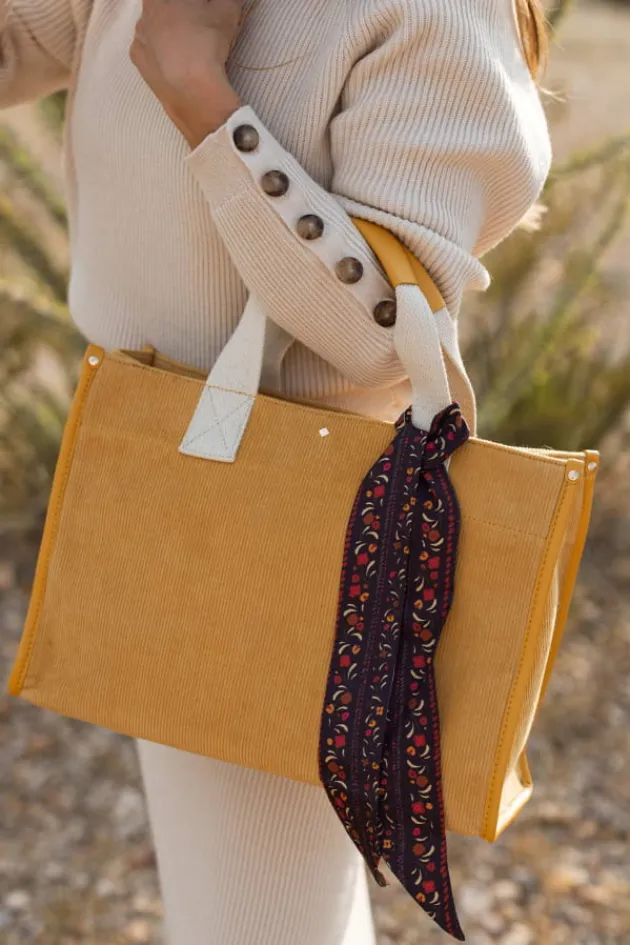 - Sac Cabas Miel En Velours Cotele 100% Coton.
