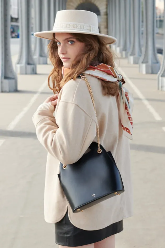 - Sac A Main En Cuir Noir Recycle Et En Cuir Velours Chevre.