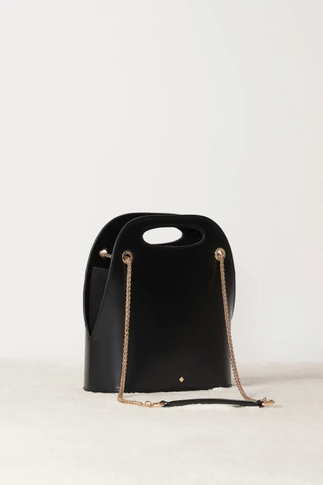 Sac A Main En Cuir Noir Recycle Et En Cuir Velours Chevre.Anses En Chaines Dorees.Double Porte : Crossbody Ou Epaule.Dou…