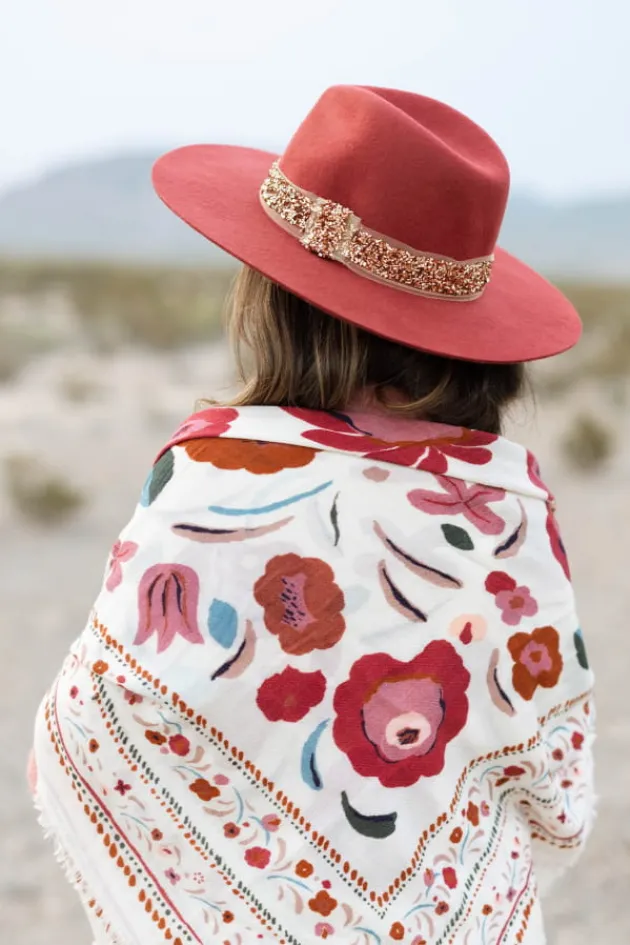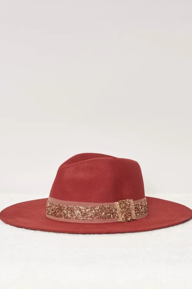 - Chapeau En Feutre Rouille A Bords Larges, Orne D’Un Galon Paillete.