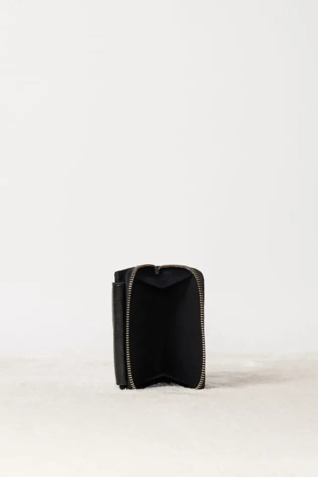 Portefeuille En Cuir Velours Noir Avec Rabat Aimente En Cuir Reptile Noir.Poche Arriere Zippee.Interieur Compartimente A…