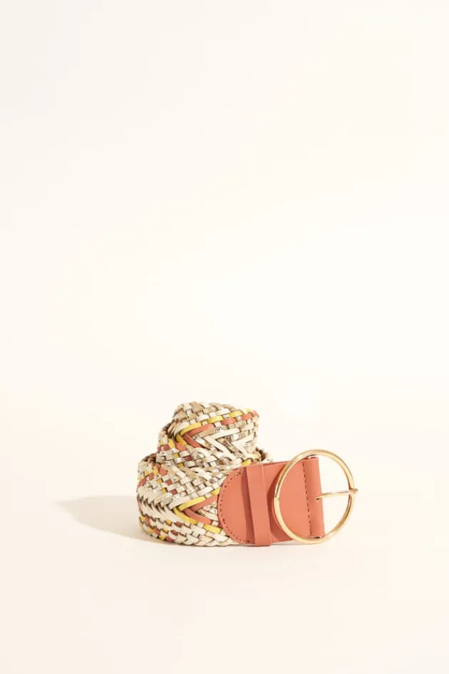 - Ceinture Tresse Multicolore Avec Boucle Doree Ronde
