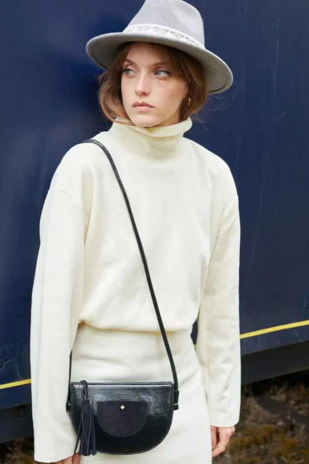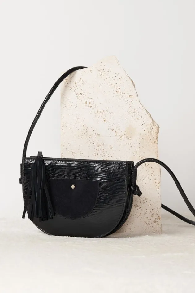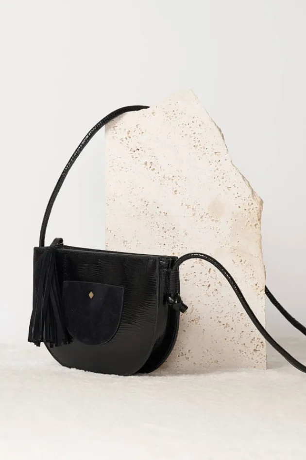 - Pochette Demi-Lune En Cuir Crackle Noir.